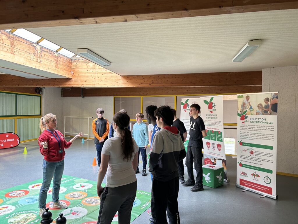 L’après-midi s’est poursuivie avec une intervention autour de la nutrition, animée par une professionnelle, en lien avec le Fonds Le Saint. Ce temps d’échange a permis de sensibiliser les élèves à l’importance d’une alimentation équilibrée, en lien avec la pratique sportive.